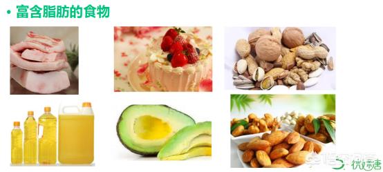 3つ目は脂肪分の多い食べ物である。.例えば、炒め物に使う植物油や動物油、脂肪分の多い肉類全般、生クリームやバター、果物のアボカド、メロンの種、ピーナッツ、クルミ、ピスタチオ、カシューナッツなどのナッツ類は、すべて脂肪分の多い食品に属する。