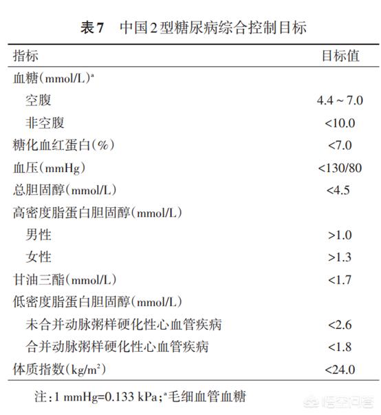 血糖コントロールの一般的な目標値は、空腹時血糖4.4~7.0mmol/L、非空腹時血糖10.0mmol/L未満である。グリコシル化ヘモグロビンは、長期的な血糖コントロールレベルの指標であり、できれば定期的に検査する必要がある。