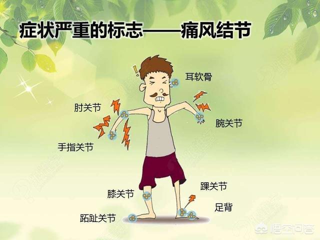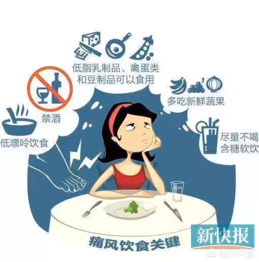 痛風は尿酸ナトリウムの沈着によって引き起こされる結晶関連関節症であり、プリン代謝障害や尿酸排泄の低下による高尿酸血症に直接関係している。よく、ある紳士が痛風発作の後にビールを飲み、魚介類を食べるという話を聞くが、痛風は確かに食事と非常に関係が深い。