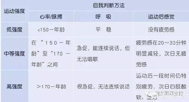 中強度の場合、心拍数はかなり加速され、一般的に「150-年齢」に達するが、「170-年齢」を超えることはない。例えば、糖尿病患者が40歳の場合、心拍数は毎分110~130回(150~40=110、170~40=130)にコントロールする必要がある。