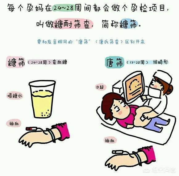 新しいスクリーニング検査:6~8時間絶食後、1回目の採血を行い、採血後に75グラムのブドウ糖水を飲む。ブドウ糖水を飲んだ後、1時間目と2時間目に1回ずつ採血を行い、3回の採血のうち1回でも基準値を超えれば、妊娠糖尿病と確定診断できる。