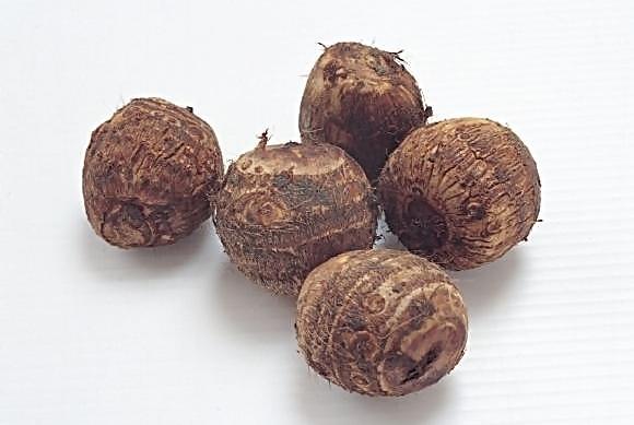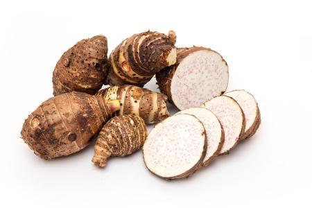 サトイモはデンプン、食物繊維、カリウムを豊富に含む。