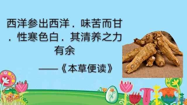 - 漢方薬の役割を分析すると、アメリカ人参は甘・苦・微寒の性質がある。補気滋陰、清熱利液の作用があり、気陰両虚、熱傷、水傷に適する。