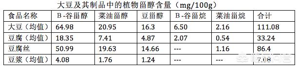 また、下の表に示すように、大豆製品には植物ステロールが多く含まれている: