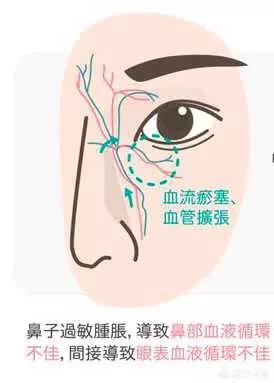 上記の要因の結果、まぶた周辺の局所血管の拡張と収縮が低下し、まぶたの浮腫、あるいは血液のうっ滞が生じ、まぶた全体が影のように見える。両目の視力もある程度影響を受け、両目とも不快で「さびしい」状態になります。