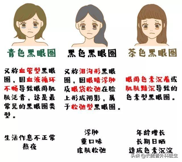 2.水色の静脈タイプ。原因:鼻炎。アレルギー性鼻炎や副鼻腔炎による鼻づまりが続くと、両目の下まぶたが鼻に当たって充血し、目の下にクマができる。 3、紫色の毛細血管タイプ。原因:夜更かしや睡眠不足。局所の血液循環が良くないと、血液中の低酸素性ヘモグロビンの割合が上昇し、色が紫色になり目立ちやすくなる。