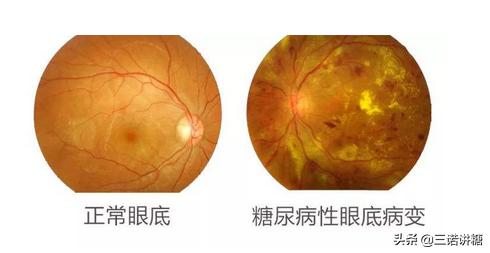 眼底に出血、滲出、浮腫が生じ、黄斑に浸潤すると、患者の視力は著しく低下し、増殖糖尿病網膜症や網膜剥離の後期でも、患者の視力は失われる程度になる。