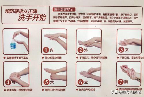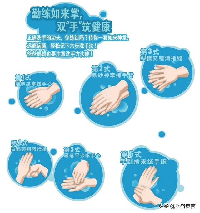 4.手洗いはウイルス感染を効果的に予防できる。食前・食後、外出・帰宅時、偶発的な呼吸器分泌物との接触時などには、できるだけ早く手洗いや清拭を行う。また、手洗いは石けん手洗いが最適で、手洗いは6ステップ手洗い法に基づいて行うことができるので、効果はより良い。