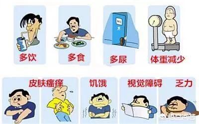 1.典型的な症状は3増1減。すなわち、食べる量が増え、常に満腹感を感じ、食事の量が以前より多くなる。排尿量が増える、以前より排尿回数が増える。飲水量が増え、いつものどが渇き、いつも水を飲みたくなる。しかし、その人は痩せている。