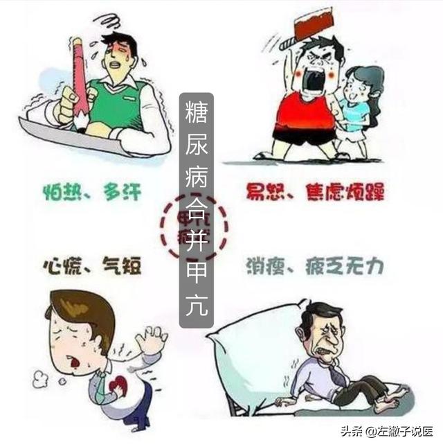 3.複合性甲状腺機能亢進症:糖尿病患者に甲状腺機能亢進症が合併すると、暑さへの恐怖、発汗過多、体重の著しい減少などの症状が出やすくなる。同時に、パニック発作や下痢などの症状が出ることもあります。できるだけ早く医師の診察を受け、抗甲状腺機能亢進症の薬を服用することをお勧めします。