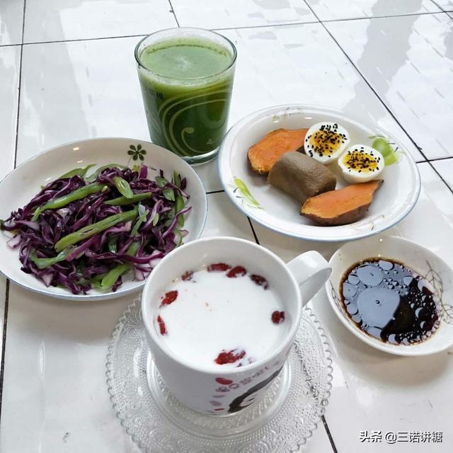 毎食、糖尿病の食事療法を厳守し、一日の総カロリーをコントロールし、栄養のバランスに注意し、主食を6テール以内にコントロールし、粗粒と細粒を混ぜる。魚、牛乳、豆乳などの良質のたんぱく質を補い、食物繊維の豊富な新鮮な野菜を多く食べる。