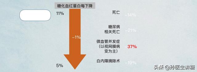 食後血糖を目標値に達するように積極的にコントロールすることで、細小血管合併症のリスクは大幅に減少する。研究によると、糖化ヘモグロビンが1%低下するごとに、死亡リスクが14%、糖尿病関連死亡リスクが21%、微小血管合併症リスクが37%低下することが示されており、食後血糖をコントロールすることは、糖化ヘモグロビンの遵守をより助長し、ひいては血糖遵守率全体を改善することになる。