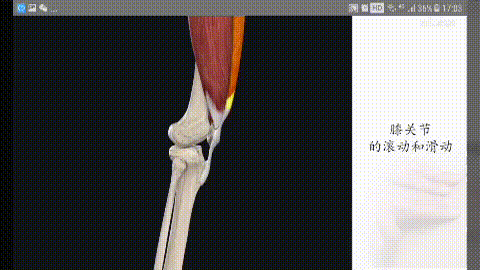 膝を伸ばすと、膝蓋骨は膝関節の屈曲と伸展に伴って動いていることがわかります。膝蓋骨の下には、いわゆる膝蓋下脂肪体があり、膝関節伸展の構造上重要な部分です。膝蓋下脂肪体は、膝関節伸展運動のクッション効果を持ち、膝関節伸展運動を円滑な構造に保つ働きがあります。
