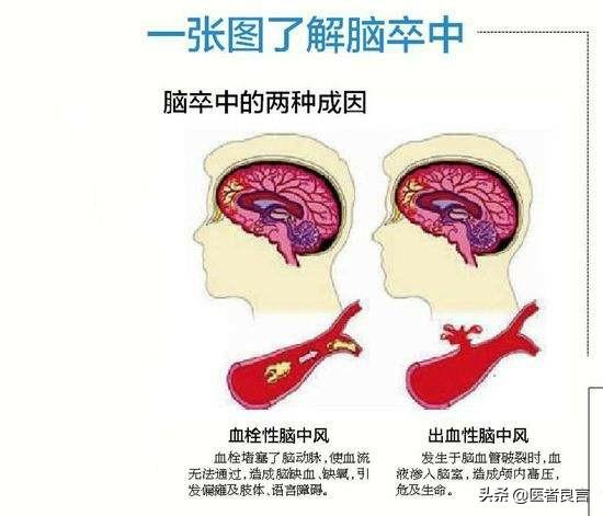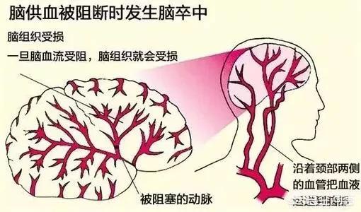 脳の血管は細かく、それぞれに任務があり、4分の3野に血管が割り当てられ、それぞれの血管が脳組織の一部の血液供給を担っている。 血管が詰まったり破裂したりして出血すると、その血管から供給されている脳組織が虚血・低酸素状態になり壊死するため、手足の半分が麻痺する、しゃべれなくなる、口角が斜めになるなどの症状が現れる。高血圧が原因で起こる脳卒中には、脳の血管が詰まって起こる虚血性脳梗塞と、高血圧が原因で血管が破れて起こる出血性脳梗塞があります。脳卒中の両形態は、高血圧の非常に深刻な合併症の一つであり、直接の死因の30%の最初の発生は、時間や脳出血、脳梗塞の範囲で救出することは大きくありませんが、人々の約60〜70%が危険な期間を乗り切ることができますが、通常は程度の差はあれ、身体障害が残ります。
