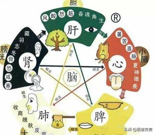 中医学の理論では、内臓はその機能によって肺、肝、腎、心、脾の五大系に分類され、金、木、水、火、土に対応する。これらの臓器にはそれぞれ独立した機能と、相乗的に影響しあうメカニズムがあり、中医学の理論では比較的よく理解されている。