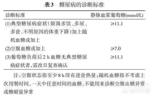 正常では、空腹時静脈血糖は3.9-6.1mmol/L、食後2時間静脈血糖は7.8mmol/L未満である。空腹時静脈血糖が6.1-7.0mmol/Lの場合、空腹時血糖調節障害であり、食後2時間静脈血糖が7.8-11.1mmol/Lの場合、耐糖能異常である。空腹時血糖調節障害と耐糖能異常は、いずれも初期の糖尿病病変であり、この時点で、積極的な生活習慣の介入:運動+食事療法によって、血糖値を正常に戻すか、糖尿病への進展を遅らせることができる。空腹時静脈血糖が7.0mmol/Lを超えるか、食後2時間の静脈血糖が11.1mmol/Lを超えると糖尿病と診断される。