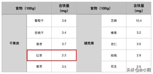 多くの人はまた、"血液を補う "ナツメを食べるのが好き、ナツメの鉄含有量は2-3mg/100gで、植物性食品では低くないが、動物性食品との差はまだ非常に遠く、吸収率と利用率は動物性食品ほど高くないので、あなたが栄養補助食品を通じて血液を補いたい場合は、まずすべての赤肉、動物の肝臓、動物の血液や他の食品。血液や他の食品、赤い日付は、唯一の最も付加的な補足することができ、貧血の問題を解決するための主な方法として使用することはできません。