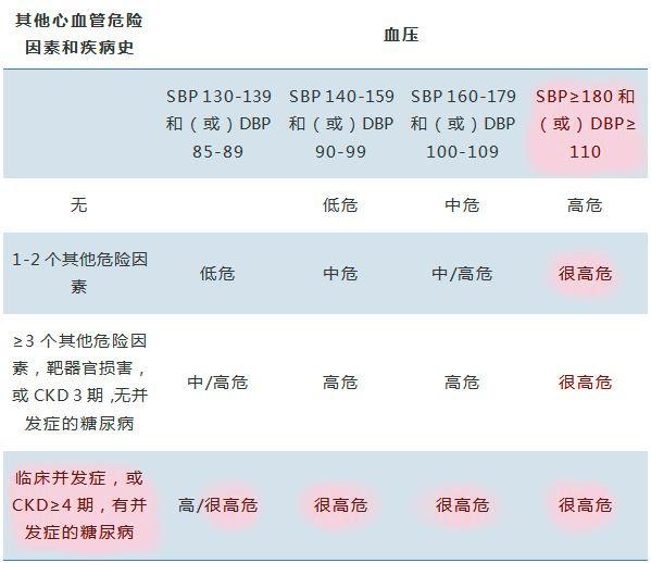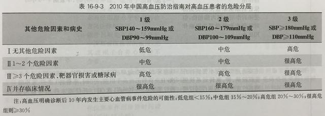 2010年中国の高血圧予防・治療ガイドラインでは、高血圧を「心血管症候群」とみなしているため、本疾患のリスク層別化は、患者の心血管リスクを総合的に評価し、治療の指針とすることを目的としている。しかし,本疾患の予後を左右する因子には,血圧値だけでなく,他の心血管疾患危険因子,標的臓器の障害,併存する臨床症状などが含まれる。したがって,血圧値と上記の因子を組み合わせて,心血管イベントのリスクに応じて患者を層別化する方が臨床的に有意義である。2010年中国高血圧予防・治療ガイドラインにおける高血圧患者のリスク層別化は、2005年中国高血圧予防・治療ガイドラインの層別化の方法を踏襲している。