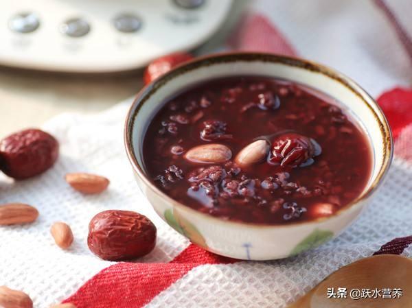 少量の赤ナツメヤシ、ピーナッツ、オーツ麦、大麦、緑豆などの粗粒穀物を加えれば、より栄養価の高い黒米粥を作ることができる。少量の大豆を加えれば、豊富なリジンが黒米のリジンの不足を補い、「タンパク質の相補効果」を反映して、栄養は非常に良い!