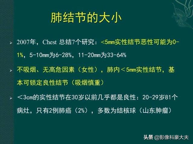しかし、すべての高リスク結節が肺癌であるわけではなく、上記の高リスク基準より小さい結節も肺癌である可能性があることも認識する必要がある!ガイドラインは、私たちのために輪になっているだけです。