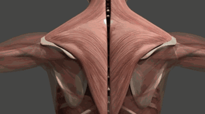 よく見るとこの僧帽筋。含む頭蓋底、首、肩、背中両側の僧帽筋は密接に連結し、菱形構造を形成している。背中の安定化首、肩、背中の様々な活動を達成するために非常に重要な役割を果たしている。僧帽筋は上部、中部、下部のバンドルに分かれており、収縮する部位によって異なる動きを完成させる。。