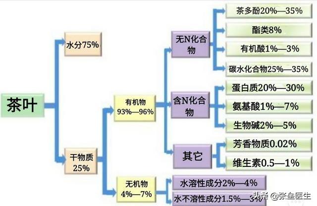 お茶には、タンパク質、脂質、炭水化物、アミノ酸、各種ビタミン、茶ポリフェノールなどの栄養素だけでなく、リン、カリウム、マグネシウム、マンガン、フッ素、カルシウム、鉄、銅、亜鉛、セレンなど、さまざまな無機ミネラル成分も含まれています。さらに、お茶にはカフェイン、テオフィリンなどのアルカロイドも1~5%含まれており、エラグ酸も9.5~21%含まれている。