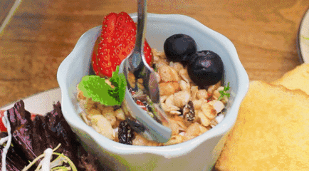 朝食にオートミールを食べる場合、コーン、牛乳、卵、クルミ、松の実、アーモンド、バナナ、イチゴ、ニンジン、ジャガイモ、ブロッコリーなどを好みに応じて加えることもできる。