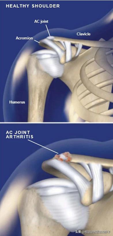 肩鎖関節も肩関節の一部であり、肩関節の活動過程で非常に重要な役割を果たしているが、肩鎖関節の軟骨が変性し、二次的に変形性関節症が形成され、患者の上肢の活動過程で肩に痛みが生じる。