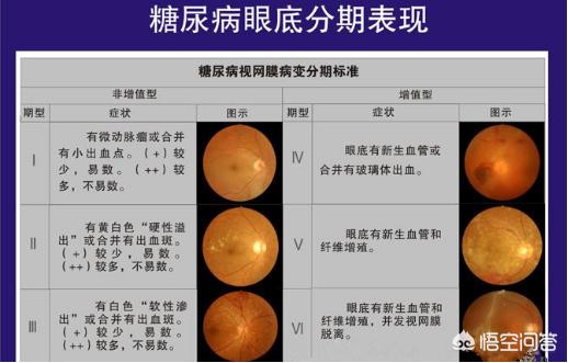 糖尿病網膜症の終点は網膜剥離である。糖尿病網膜症は6段階に分けられ、糖尿病が進行するにつれて悪化し、網膜が完全に剥離すると全盲になります。