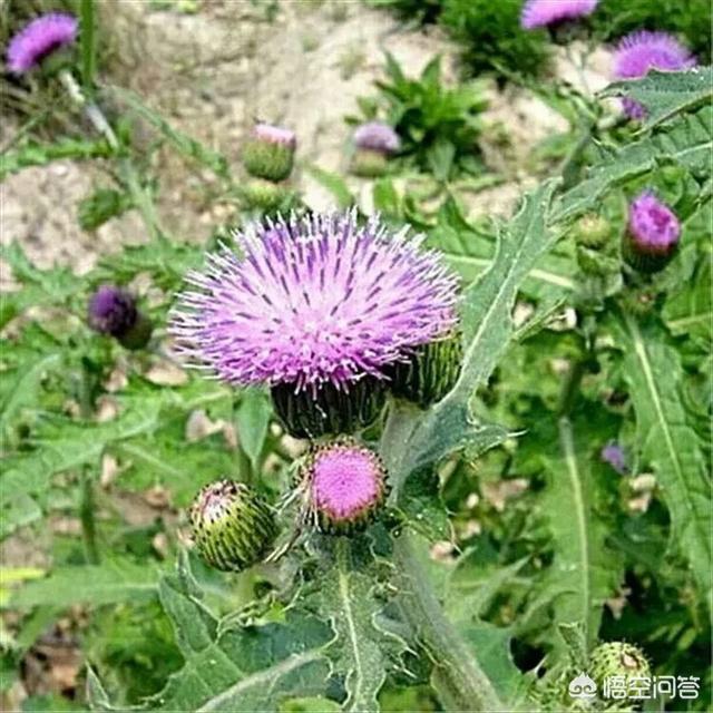 アザミは中国の南北に広く分布する多年生草本で、しばしば荒地、農地、斜面、道端に生え、最も一般的な野草の一つで、正式な中国語名はアザミで、小アザミ、紅花苗、薊、棘、薊など多くの別名があり、キク科アザミ属の植物である。
