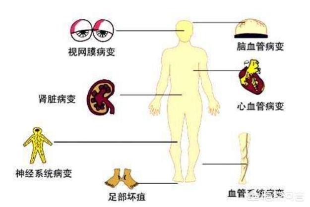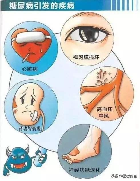 1、微小血管症の関与は容易に糖尿病性眼症、視覚障害による網膜剥離につながる;糖尿病性腎症、腎不全水腫の出現。