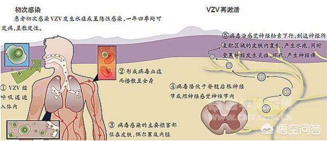 帯状疱疹は一般的に糸状腰竜、巻腰蛇、腰上蛇、火丹、頸部では錠顎蛇、漢方では生蛇と呼ばれている。帯状疱疹の病原体は水痘帯状疱疹ウイルスで、ウイルスは上気道や眼瞼結膜から人体に侵入し、全身感染を引き起こします。ウイルスは知覚神経に沿って脊髄神経節や大脳知覚神経節に侵入して潜伏し、身体の免疫機能が低下すると潜伏ウイルスが再活性化して大量に複製され、知覚神経線維に沿って神経支配する皮膚節に広がって帯状疱疹を発症する。