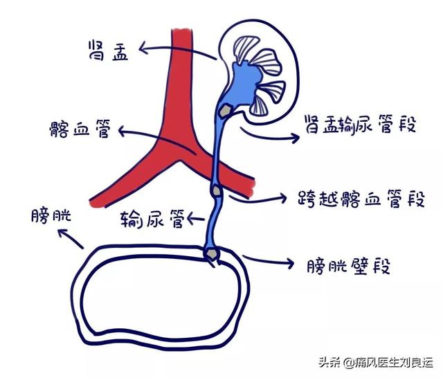 実際、高尿酸血症による痛風腎症の原因は、やはり主に腎臓の自己調節機構の破壊によって高血圧と蛋白尿を引き起こし、腎障害を悪化させることにある。痛風腎症の病態は、尿酸結晶の直接作用、尿酸による内皮細胞機能への影響、レニン・アンジオテンシン系およびシクロオキシゲナーゼ2系の活性化、炎症因子の障害、糸球体における重篤な血管障害の誘発、その他の代謝異常、尿酸トランスポーター蛋白の影響などが主な原因である。高尿酸による腎臓へのダメージは、やはり尿酸腎症や尿酸腎結石が主なものである。