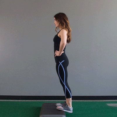 - 動作に対する抵抗を増やす(例えば、両足ヒールリフトから片足立ちダウンヒールリフトに変更する)。