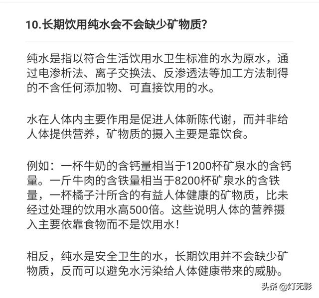 これは似非科学の専門家が捏造したもので、今、汚染は非常に強く、純粋な水を飲まなければならない、たとえミネラルウォーターであっても、水の微量元素の水も最小限であり、何かを食べることが補完することができますが、代わりに長期的に汚染された水を飲むことは良いことではありません!