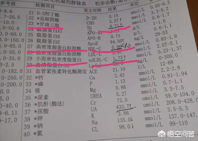 検査報告書を読んだ後、中性脂肪の値が4.4であることを告げた!高い。