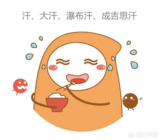 2.脾虚。食事中にかく汗は、漢方では食汗と呼ばれる。飲食直後の汗、あるいは雨のような汗。脾の熱が原因です。胃と脾は補い合う関係にあるため、脾が弱っていると食事の熱が刺激されて胃の働きが促進される一方、脾は「消化しにくい」ので汗をたくさんかきやすく、脾虚発汗が起こります。