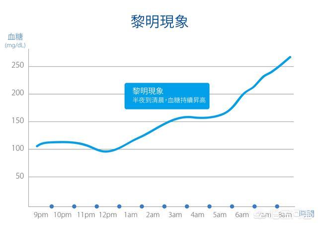 要約すると、明け方現象とは、インスリン分泌不足、またはインスリン抵抗性のために、就寝前の血糖値が正常であるにもかかわらず、早朝の血糖降下作用が血糖上昇作用よりも弱く、血糖が上昇し、結果として空腹時血糖が上昇する現象である。長時間作用型血糖降下薬を使用することで、夜明け現象を効果的に抑制することができる。