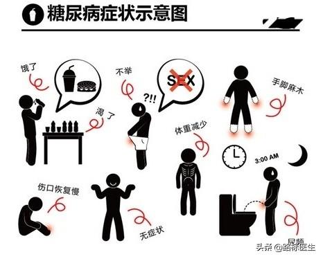 多くの人は糖尿病を早期に発見しても気づかず、無視してしまうことが多い。典型的な症状は、食べたり飲んだりすることはできるが、体重が減少することである;また、目が見えにくい、空腹感、疲労感などの非典型的な症状を示す人もいる。