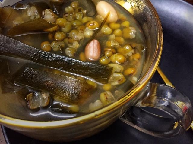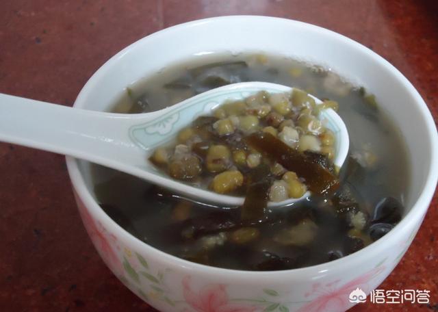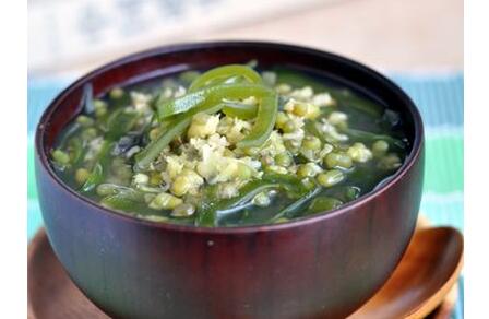 緑豆と昆布は、どちらも冷たい製品で、病気による夏の暑さを和らげることができ、夏の湿気が混ざっている場合には、2つ一緒に暑さをクリアすると同時に、緑豆は湿気を排除する役割を果たします。