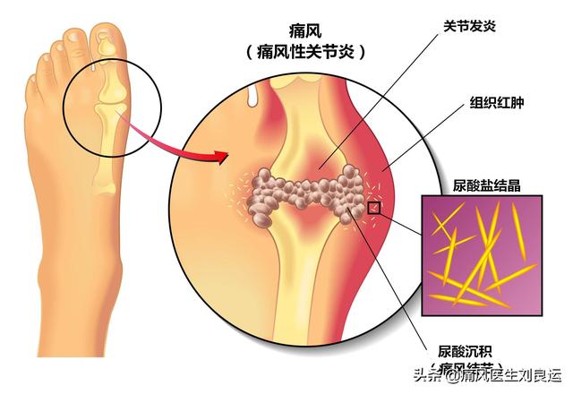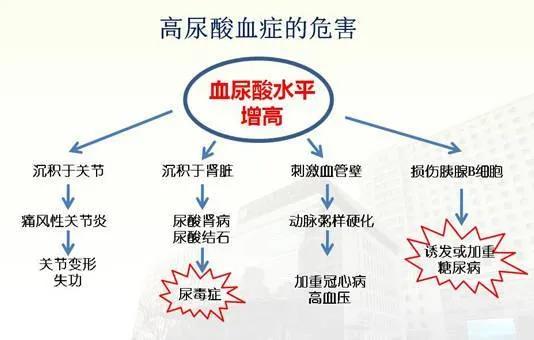 最も恐ろしく、直接的な害は痛風である 痛風は結晶関連関節症によって引き起こされる関節の尿酸一ナトリウム沈着であり、プリン代謝障害と尿酸排泄は高尿酸血症に直接関連して減少する。関節、軟部組織および腎臓における尿酸塩の沈着のために、関節炎、皮膚病変および腎臓の損傷を引き起こすだけでなく、三高および冠状動脈性心臓病のようなメタボリックシンドロームの他の症状を伴うことができる。