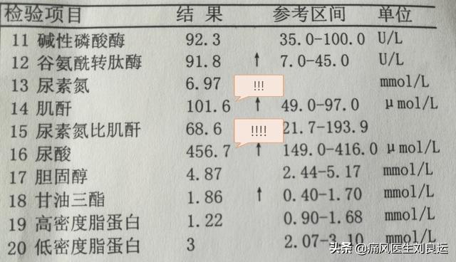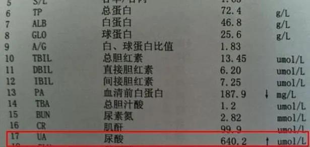 したがって、6年前から尿酸値が420~480の範囲にあるこの患者は、明らかに高尿酸血症に注意を払ったことがなく、食生活の調整もしていない可能性が高い!