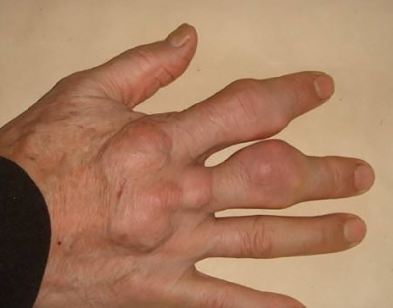 - (10) 関節障害:高尿酸血症が標準的な治療を行わずに長期にわたって痛風を引き起こした場合、痛風は再発し、骨関節表面の破壊と周辺組織の線維化を引き起こし、関節のこわばりと変形をもたらし、痛みは徐々に増加し、同時に罹患関節の数も増加する。さらに、痛風の長期再発は関節内に痛風結石を成長させ、関節活動に影響を及ぼす。