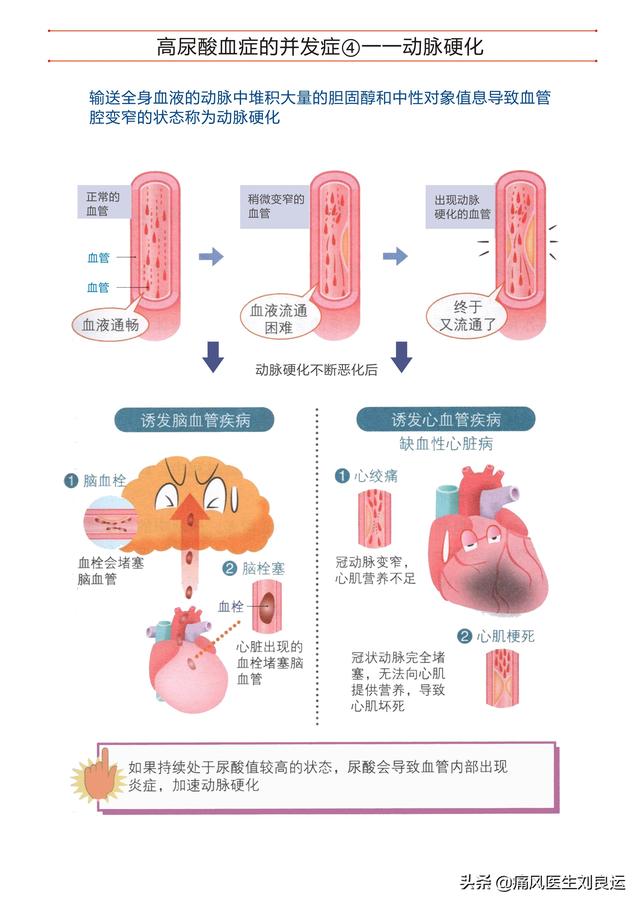 第四に、高血圧、心血管疾患、脳血管疾患などの多臓器障害を引き起こす。痛風患者のように、痛風再発発作、その後、まだ尿酸降下治療の標準化されていない、一般的に約10年腎機能をチェックするために、腎不全があるかもしれませんし、さらに誘導尿毒症の数が発生します。