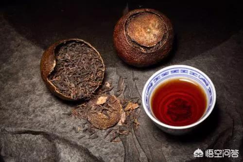 1.ミカンの皮にプーアルを丸ごと詰めたミカンプーアル茶は、プーアル茶のまろやかさとミカンの皮の爽やかな香りを兼ね備え、膏濁を除き、脾胃を強化する効果がある。