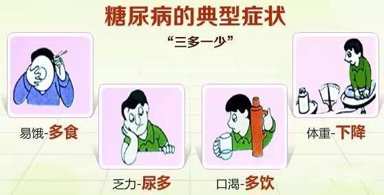 糖尿病の症状は、2つのカテゴリに分けることができます:1つのカテゴリは、代謝障害に関連している、特に高血糖に関連する "3多くて1少ない"、多飲多食とやせを指し、主に1型糖尿病で見られる、2型糖尿病は、一般的に明らかでないか、または患者のパフォーマンスの一部だけであり、肥満の発症前に2型糖尿病の発症は、多くの場合、取得しない場合は、発見されます。もし2型糖尿病が時間内に診断されないならば、重量損失は徐々になります;もう1つの主要なカテゴリーは、糖尿病性ケトアシドーシス、高浸透圧非ケトーシス糖尿病性昏睡、糖尿病性乳酸アシドーシス、糖尿病性皮膚感染症、糖尿病性足のような、様々な急性および慢性の合併症です。