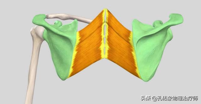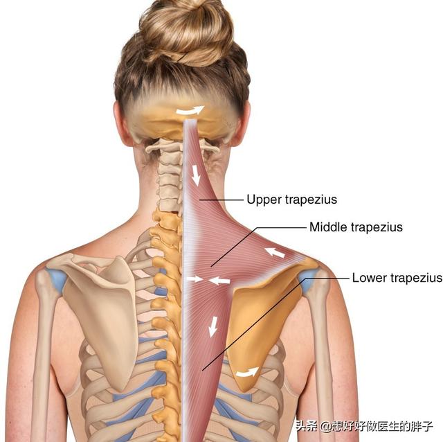 よく見るとこの僧帽筋。含む頭蓋底、首、肩、背中両側の僧帽筋は密接に連結し、菱形構造を形成している。背中の安定化首、肩、背中の様々な活動を達成するために非常に重要な役割を果たしている。僧帽筋は上部、中部、下部のバンドルに分かれており、収縮する部位によって異なる動きを完成させる。。