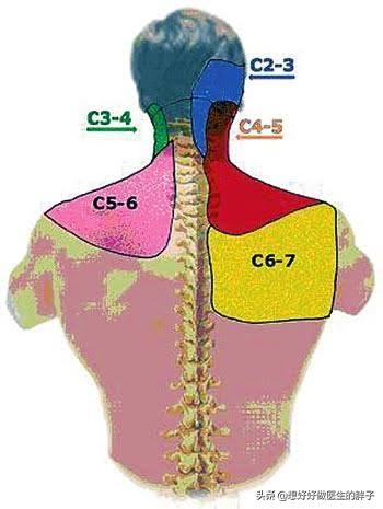 2、筋筋膜性疼痛症候群:筋筋膜性疼痛症候群は、筋鞘に現れる慢性的な症状である。トリガーポイントトリガーポイントを圧迫すると、肩、腕の後ろ、手、薬指小指に痛みが放散する。