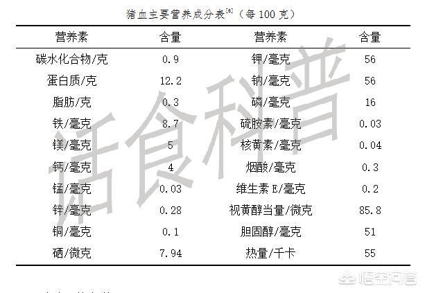 豚の血液は人体に必要な8種類のアミノ酸を含み、タンパク質は卵より6.2%高く、リジンは肉、穴、卵の2倍である。