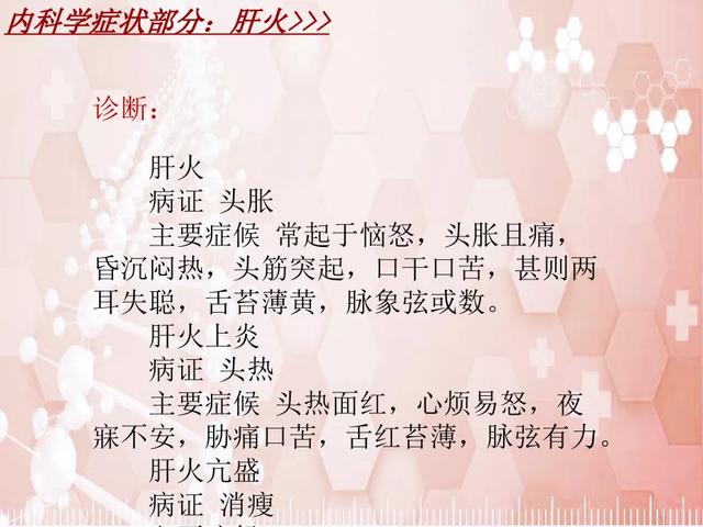 肝火亢進は中医学理論における病気の説明ですが、中医学的な病気の分析は、患者の症状、外見、体格、声、舌、脈などを総合的に分析し、その症状を特定した上で、ある種の病気として確定することに注意してください。